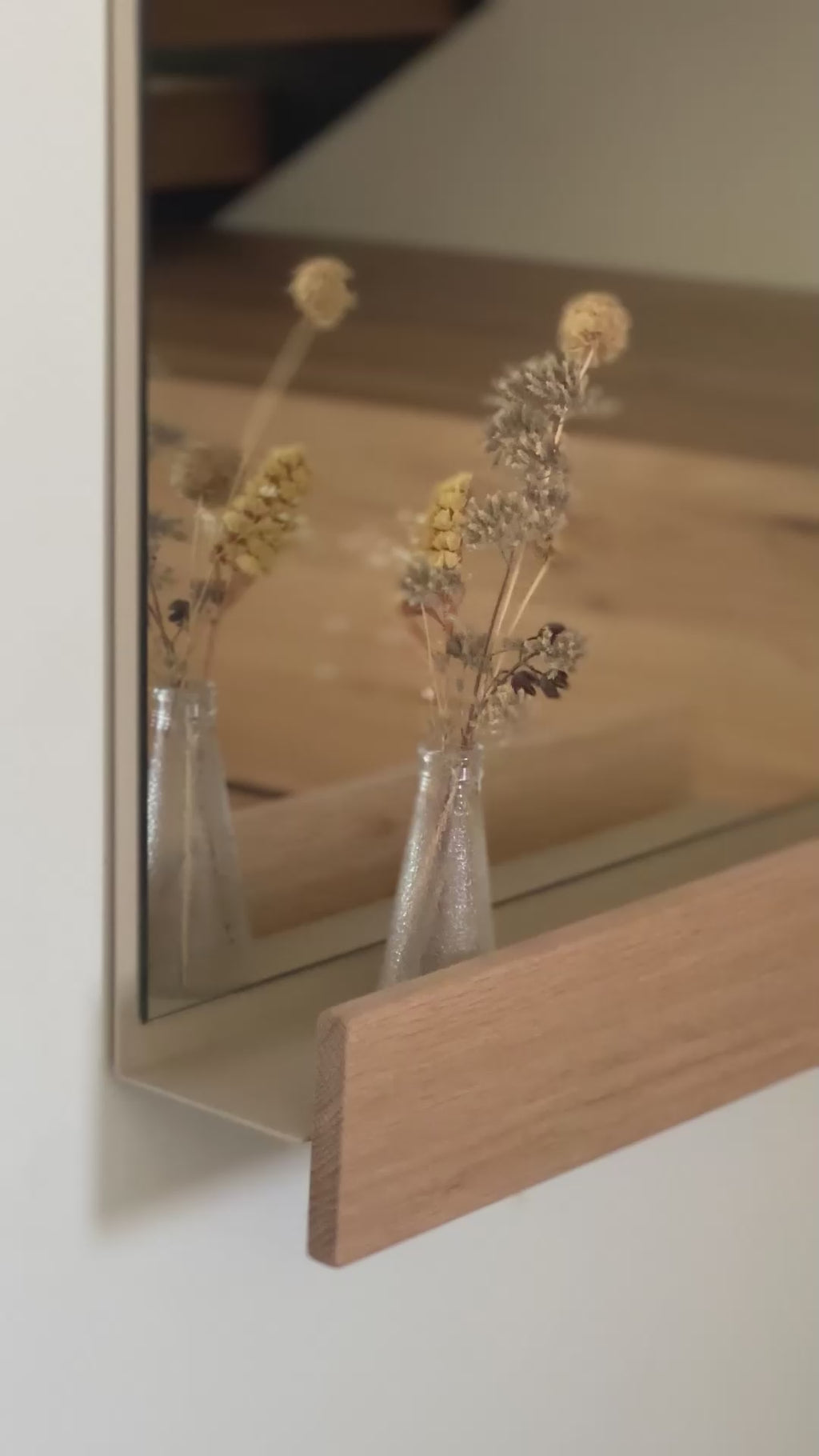 מראת PLANK היא מראה עם מדף לכניסה שעשויה בשילוב מתכת בגימור אלקטרוסטטי ועץ אלון מלא. מראת גוף שמביאה יחד איתה גם פרקטיקה – מקום להנחת פריטים וגם עיצוב שקט לחדר שינה, מסדרון או מקלחת. הבחירה המושלמת למי שמחפש מראה מעוצבת עם אופי.